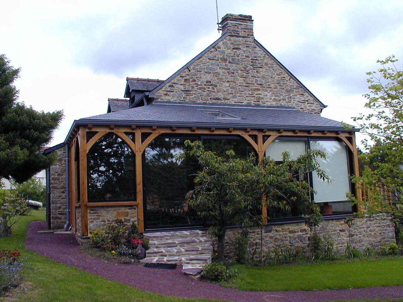 Conçues grâce à un assemblage traditionnel avec tenons, mortaises et chevilles, ces vérandas bois peuvent être classiques avec couverture tuiles ou contemporaines en toit plat.